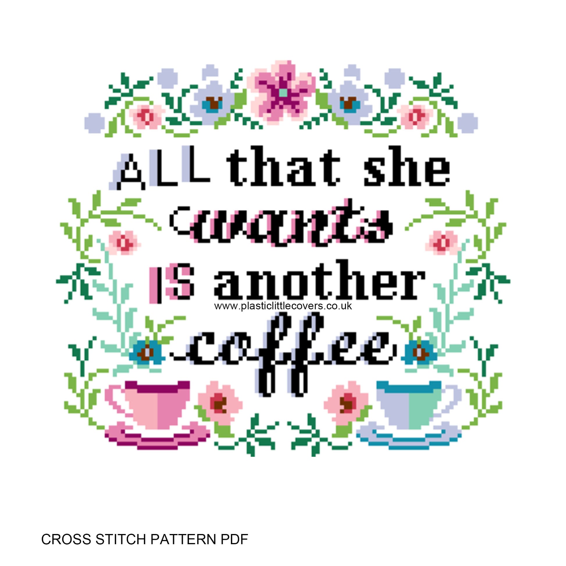 All That She Wants Is Another Coffee - Cross Stitch Pattern PDF.