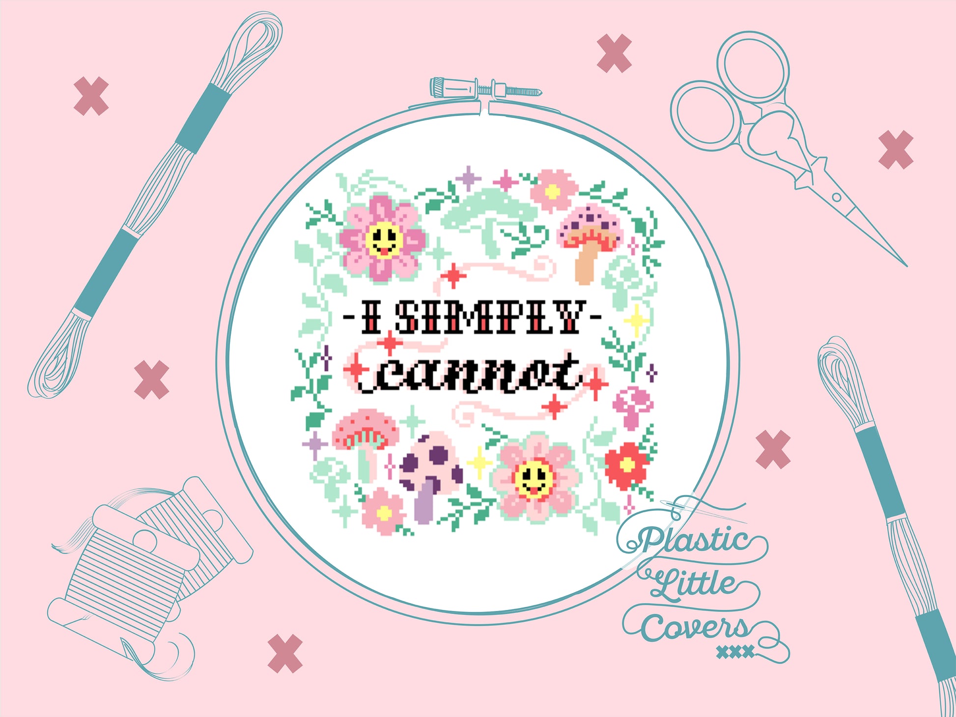 All cross stitch patterns are designed by Lauren of Plastic Little Covers. Please do not sell or share the pattern designs/charts, and please do not sell for profit any finished cross stitch made from a Plastic Little Covers pattern. I’m happy for finished works to be sold/donated in aid of charity, but please do let me know where possible. Thank you!