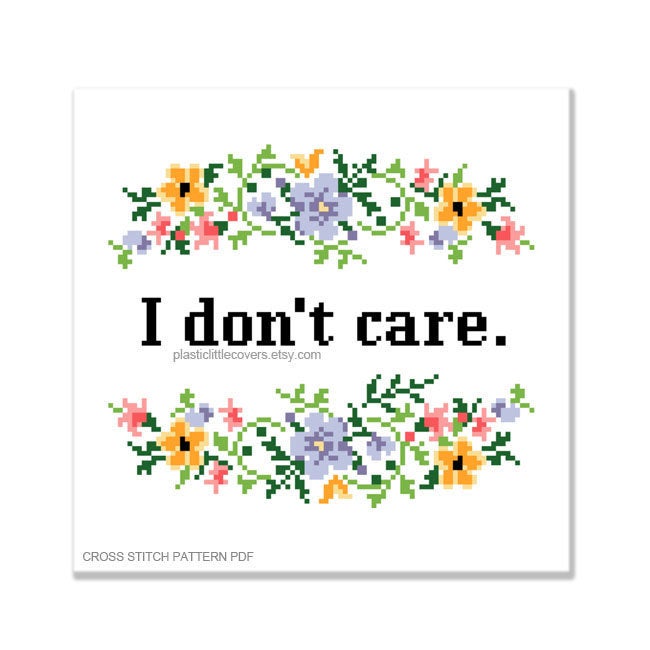 I Don't Care - Cross Stitch Pattern PDF.